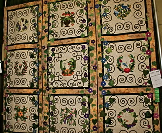 The voting public awarded the "Viewer's Choice" ribbon is determined at the end the show. "Morning Glory Madness" by Joann Webb of Grain Valley, Missouri quilt got it.